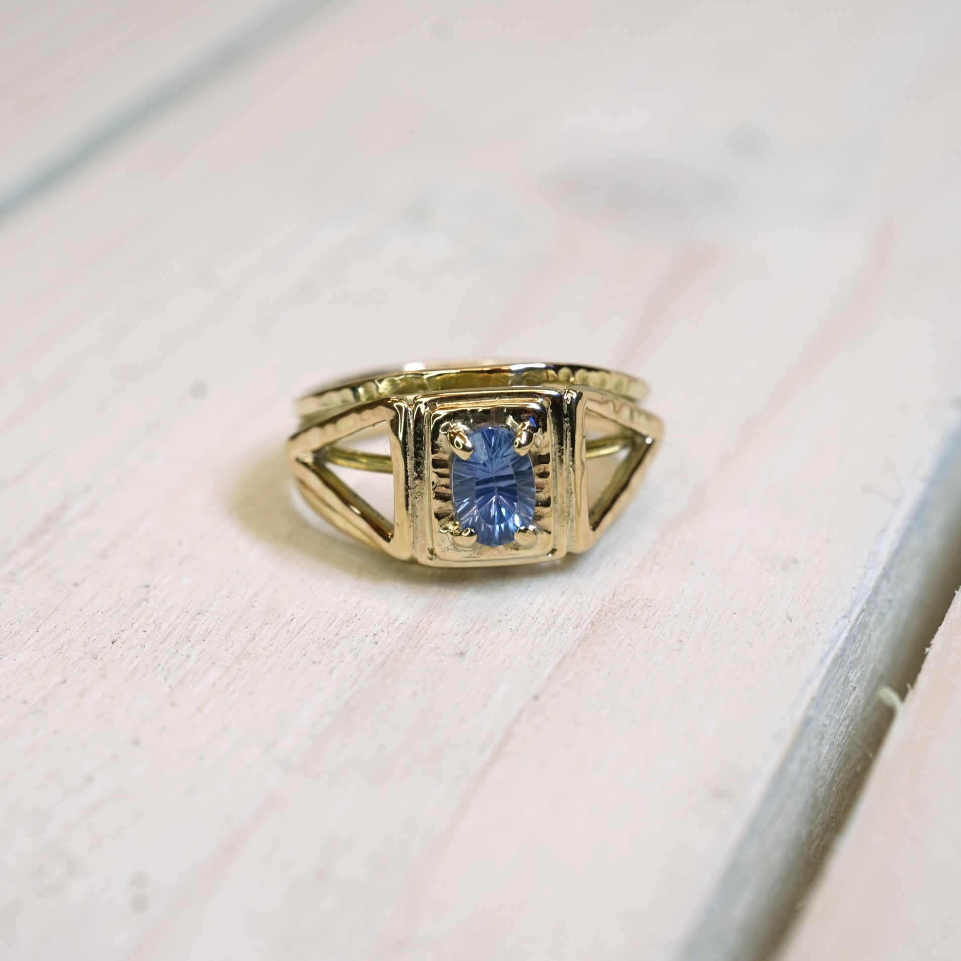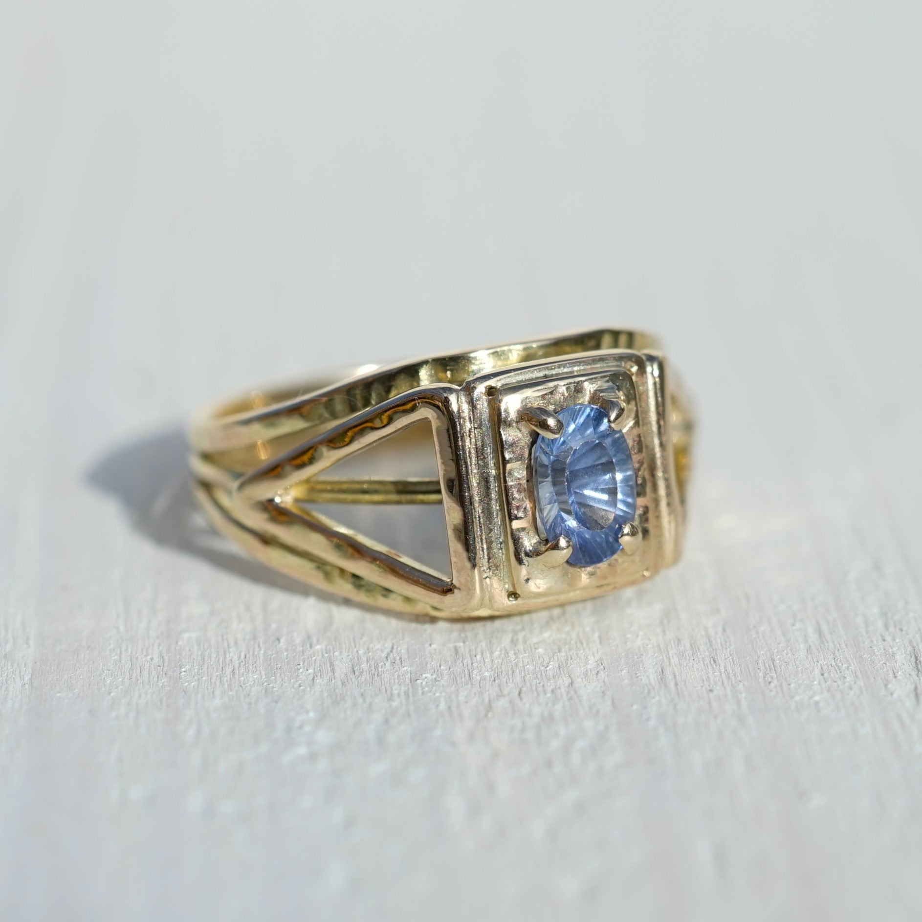 9ct Gold and Blue Sapphire Signet Ring, size N