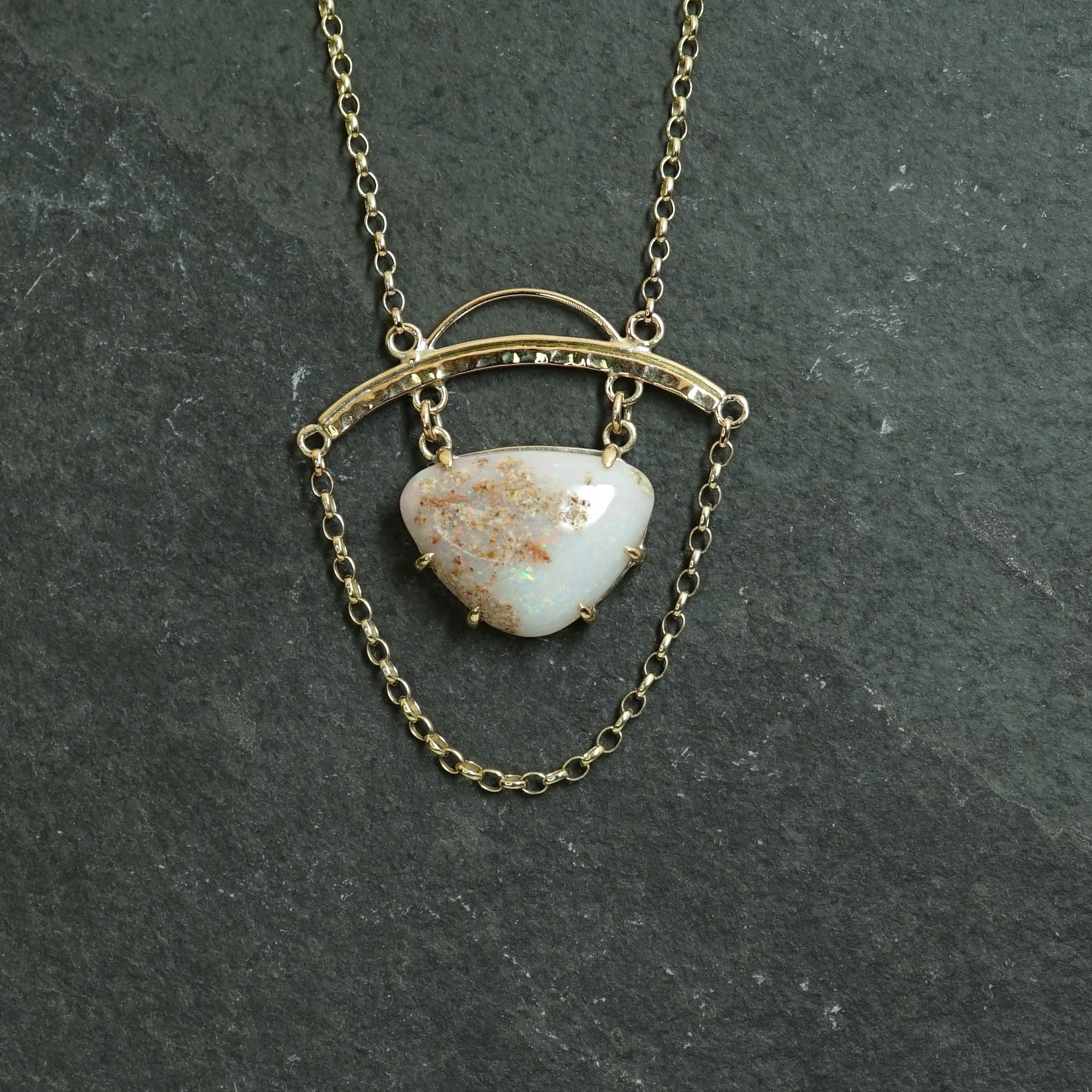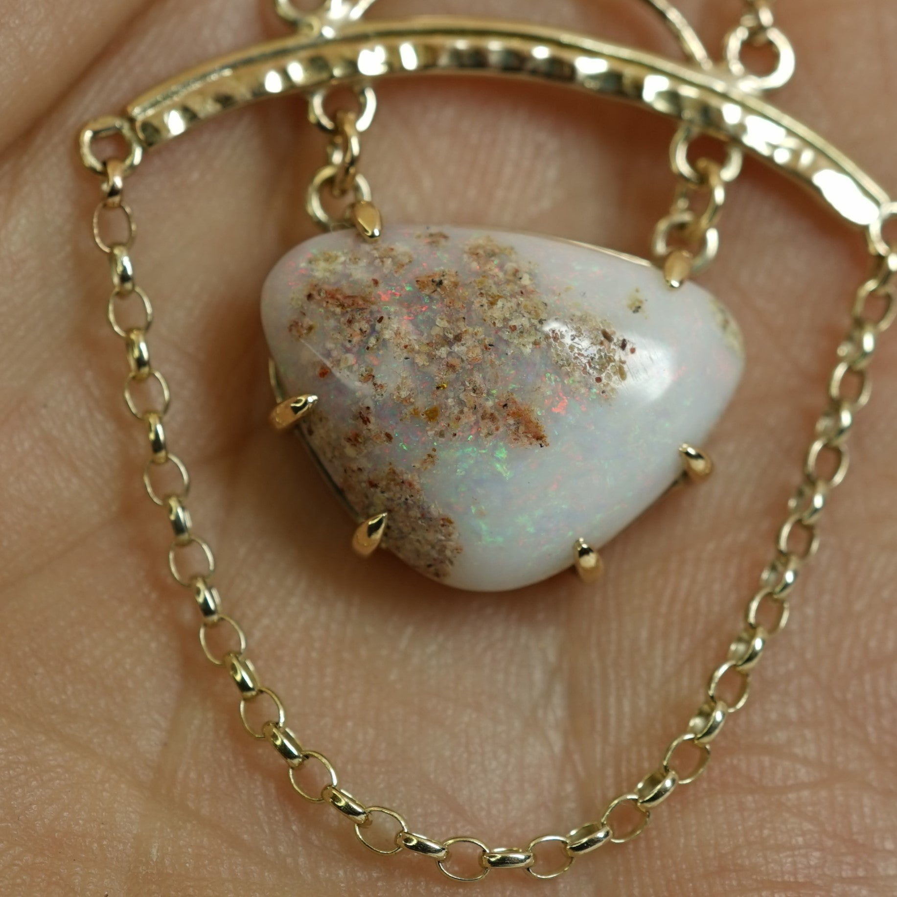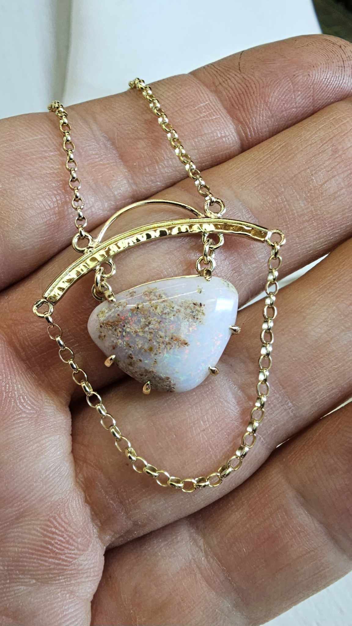 Wearing this pendant is like carrying a piece of Australia's mystical beauty close to your heart. a tangible connection to the ancient forces that shaped the opal and the skilled hands that transformed it into a wearable work of art. Whether you're drawn to its symbolic significance or simply captivated by its aesthetic allure, this pendant is a celebration of the extraordinary.