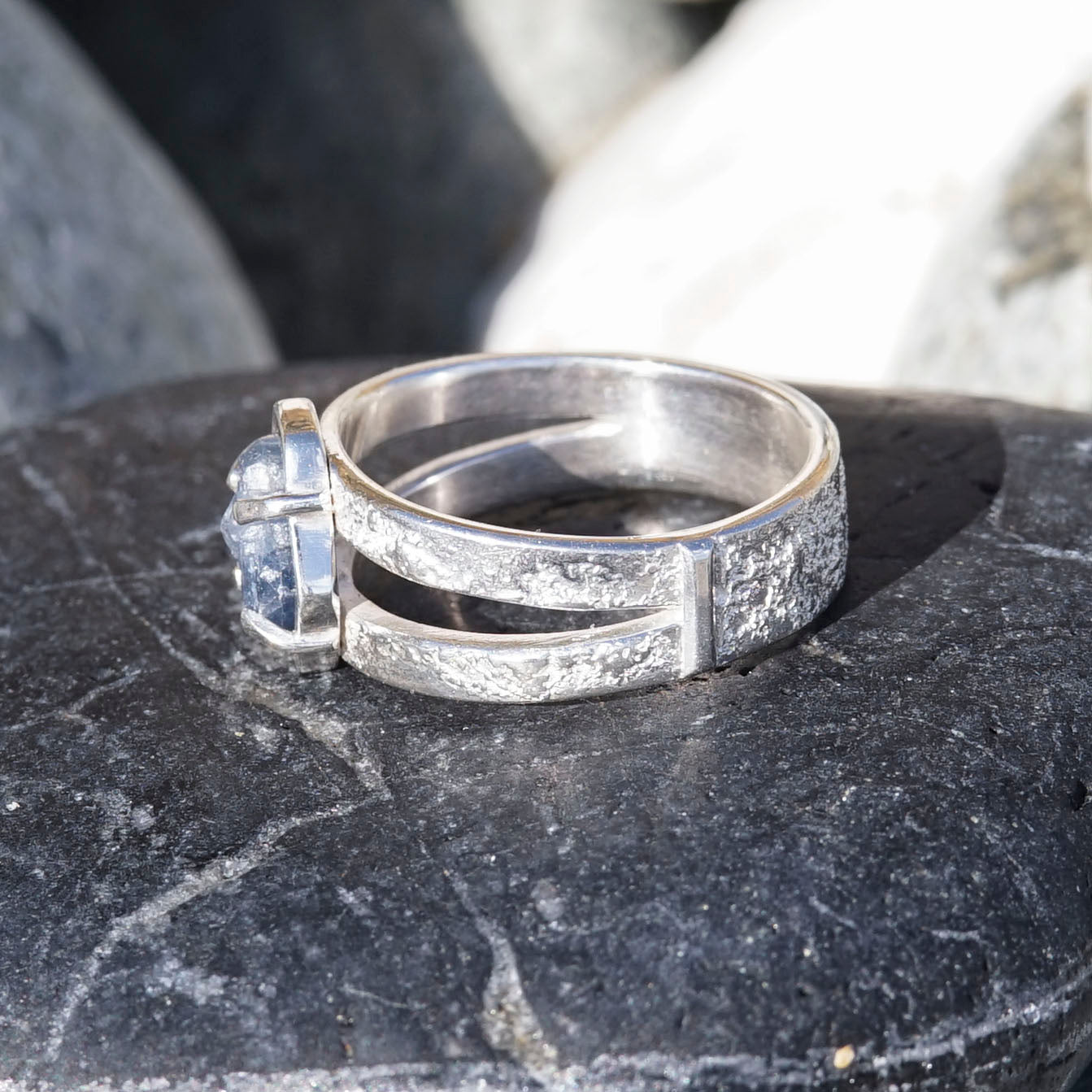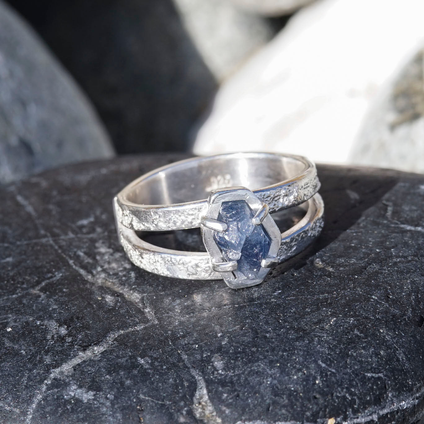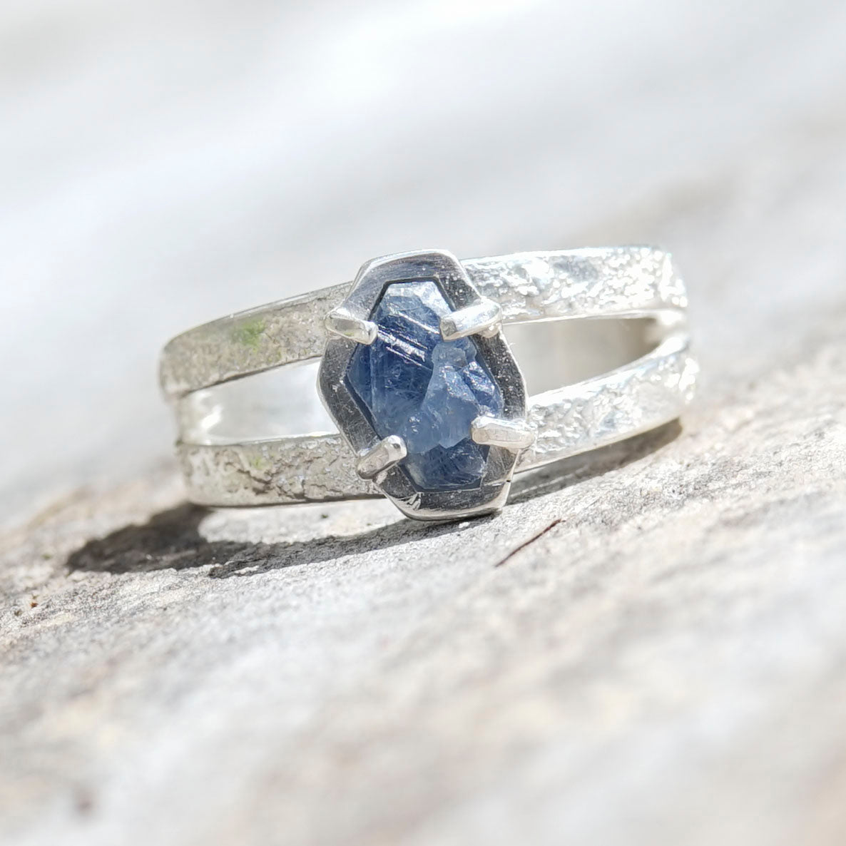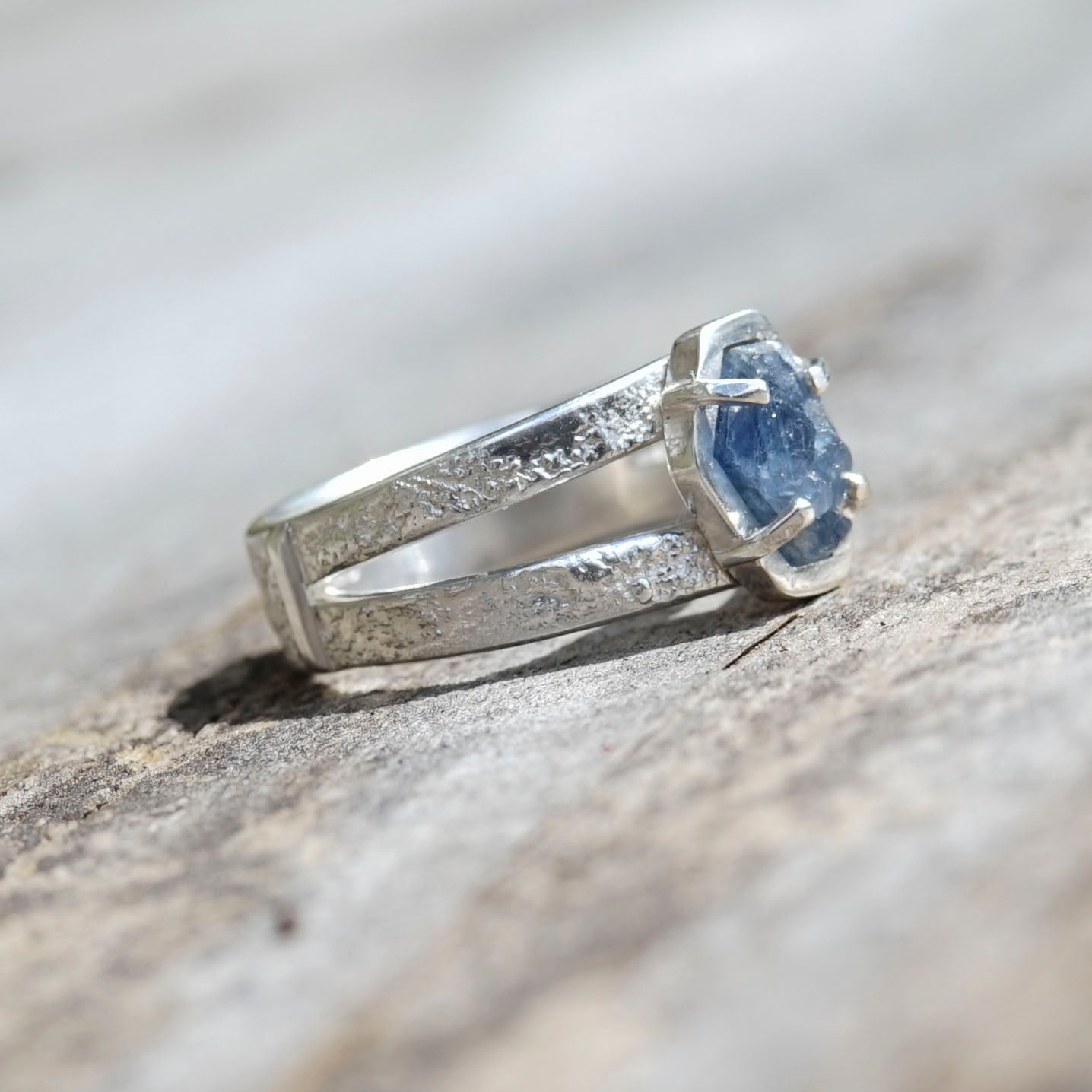 Raw Sapphire, 925 Sterling Silver, Split Band Ring