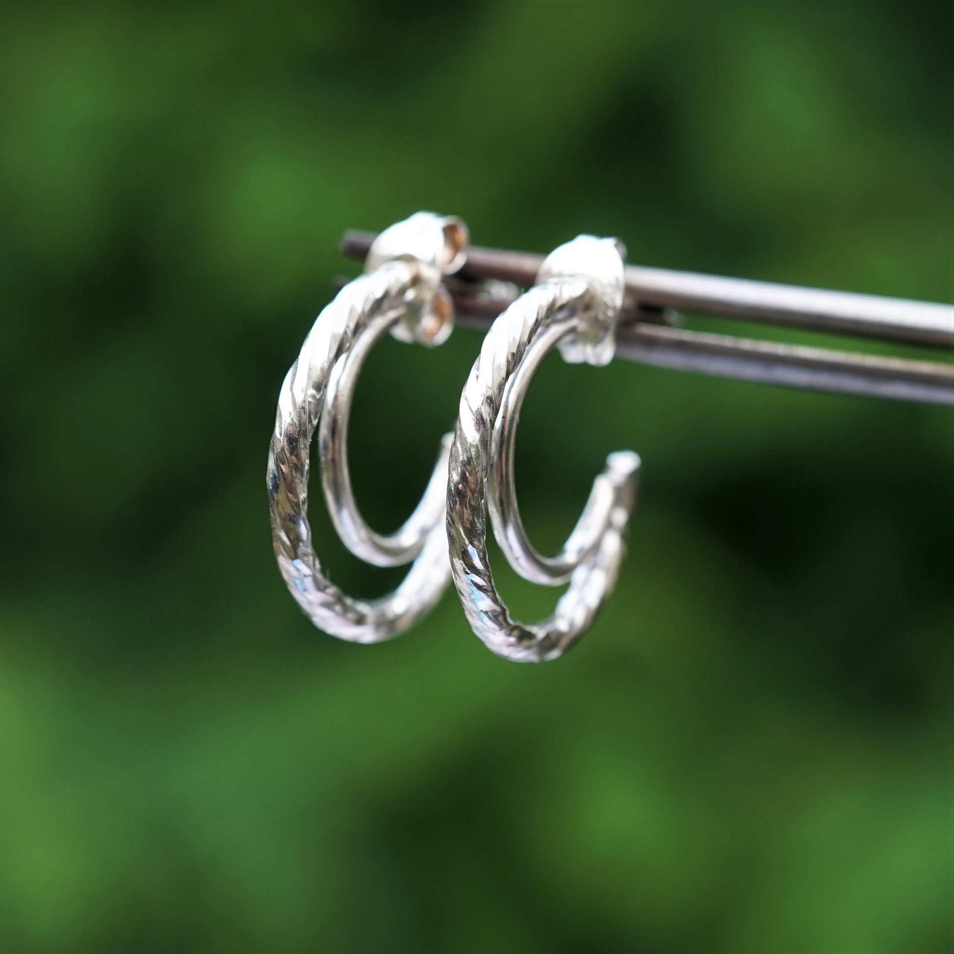Hammered and handmade 925 Sterling Silver 2 Hoop Earrings