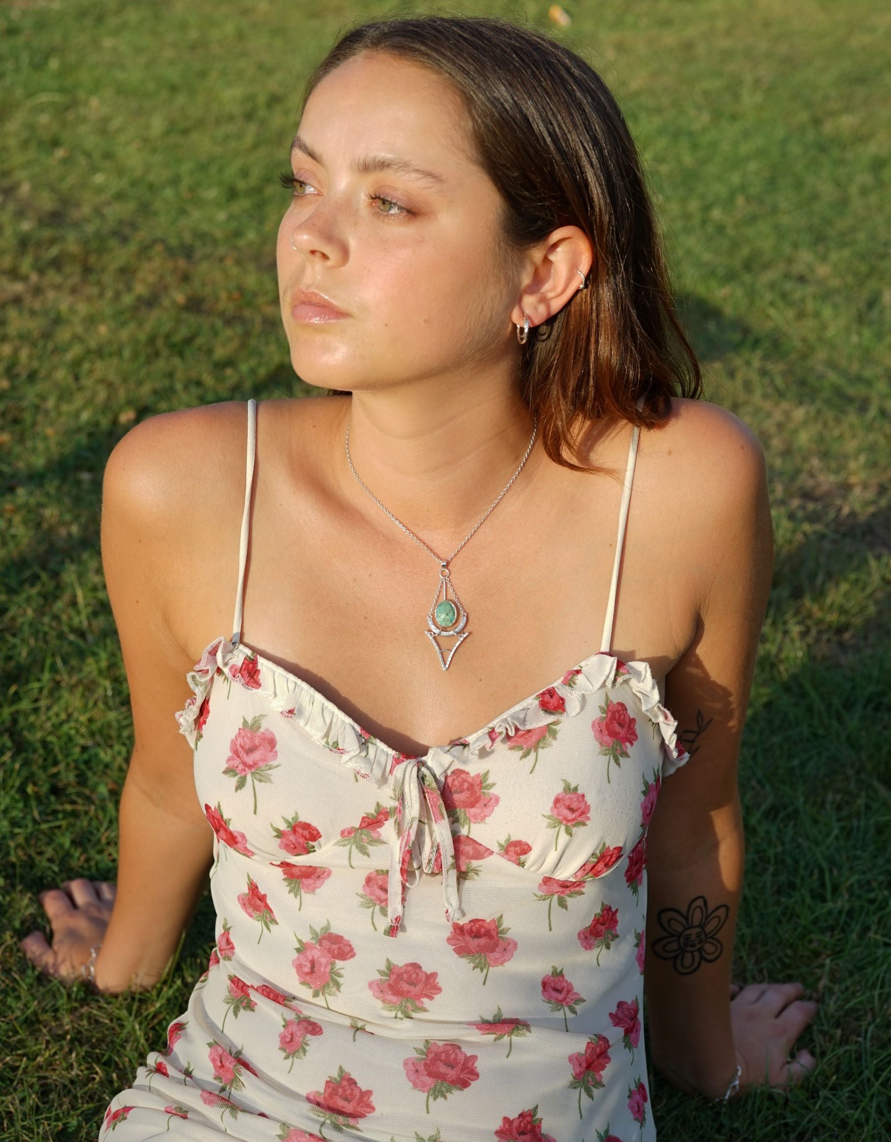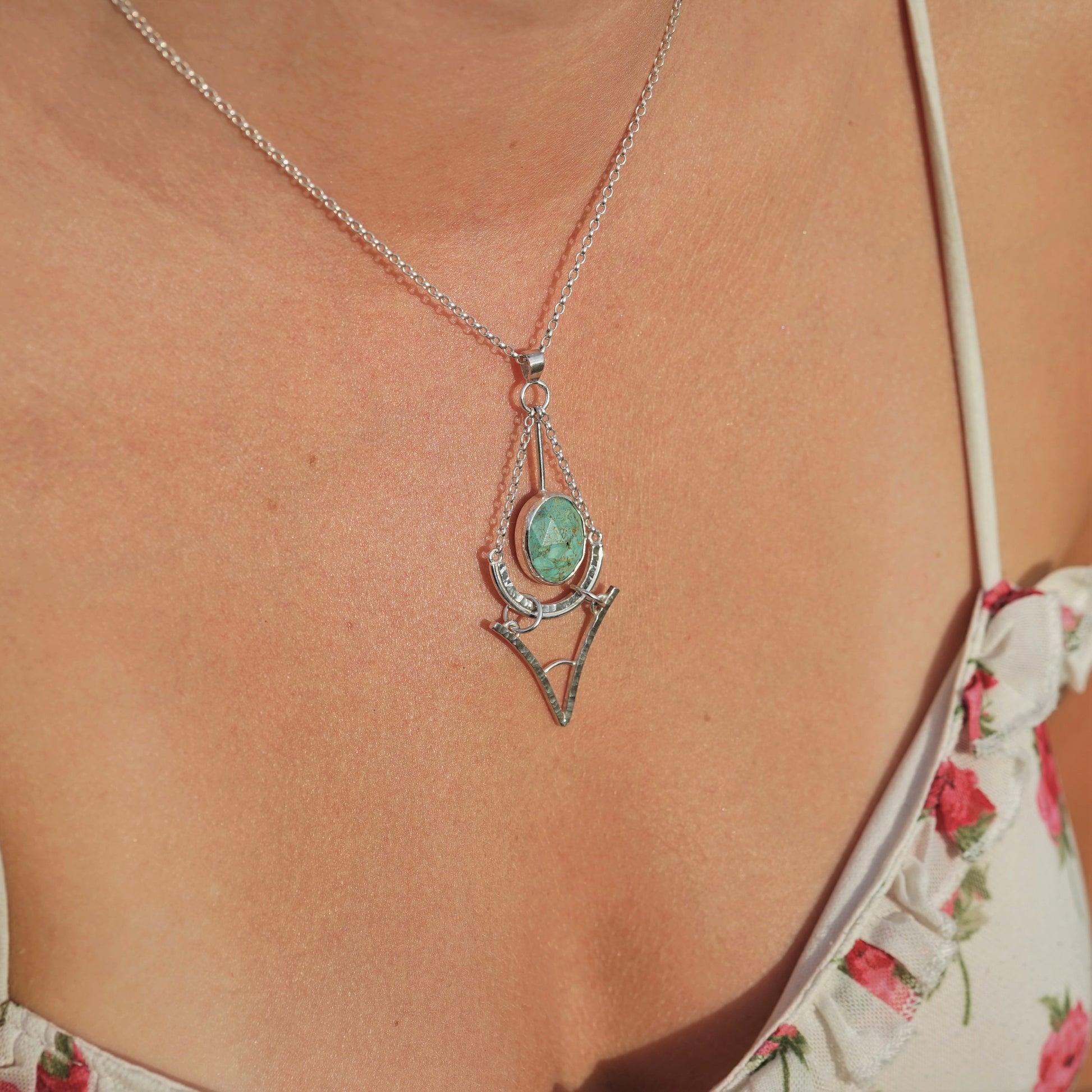 The gem is an Hubei Turquoise and the pendant is handcrafted from 925 sterling silver.
