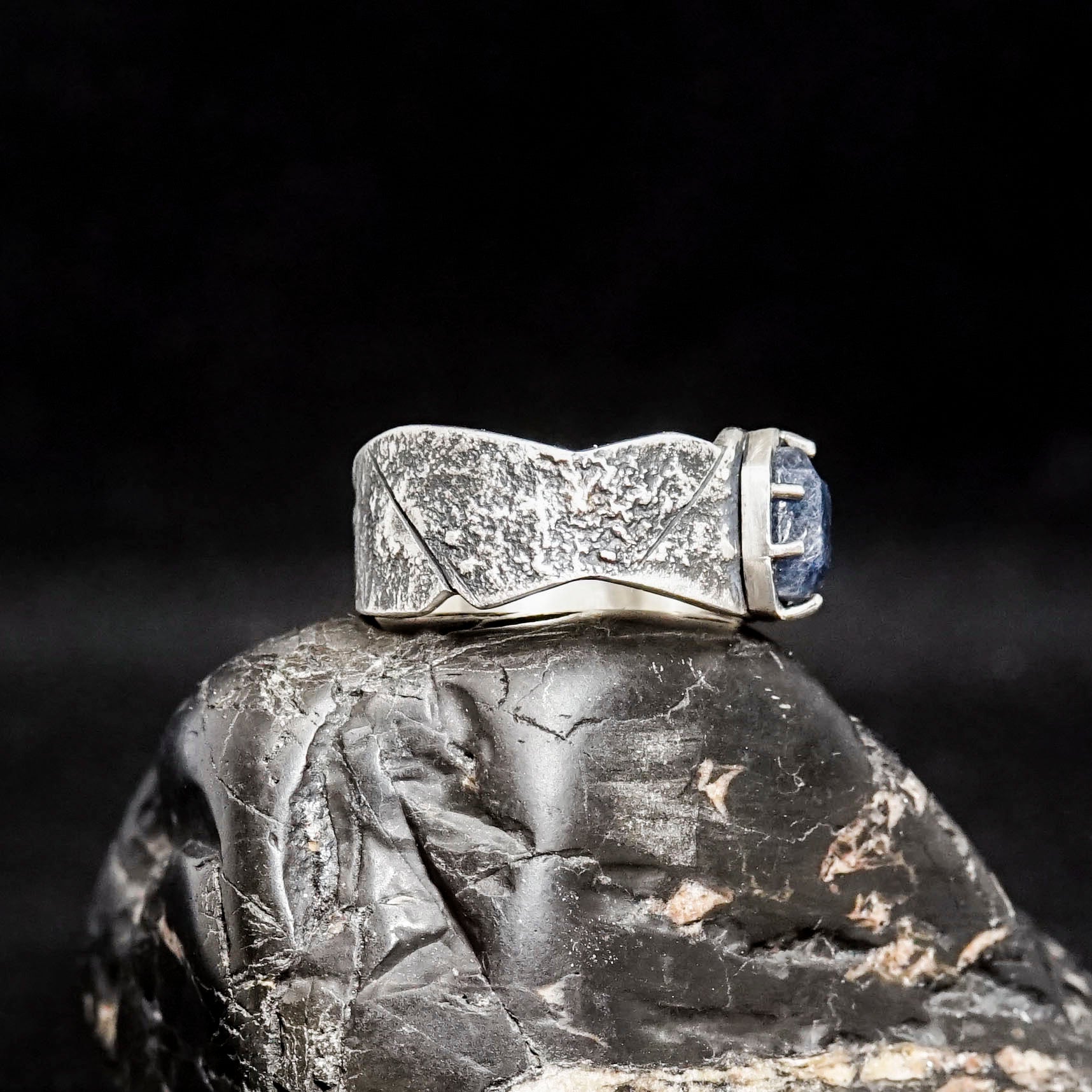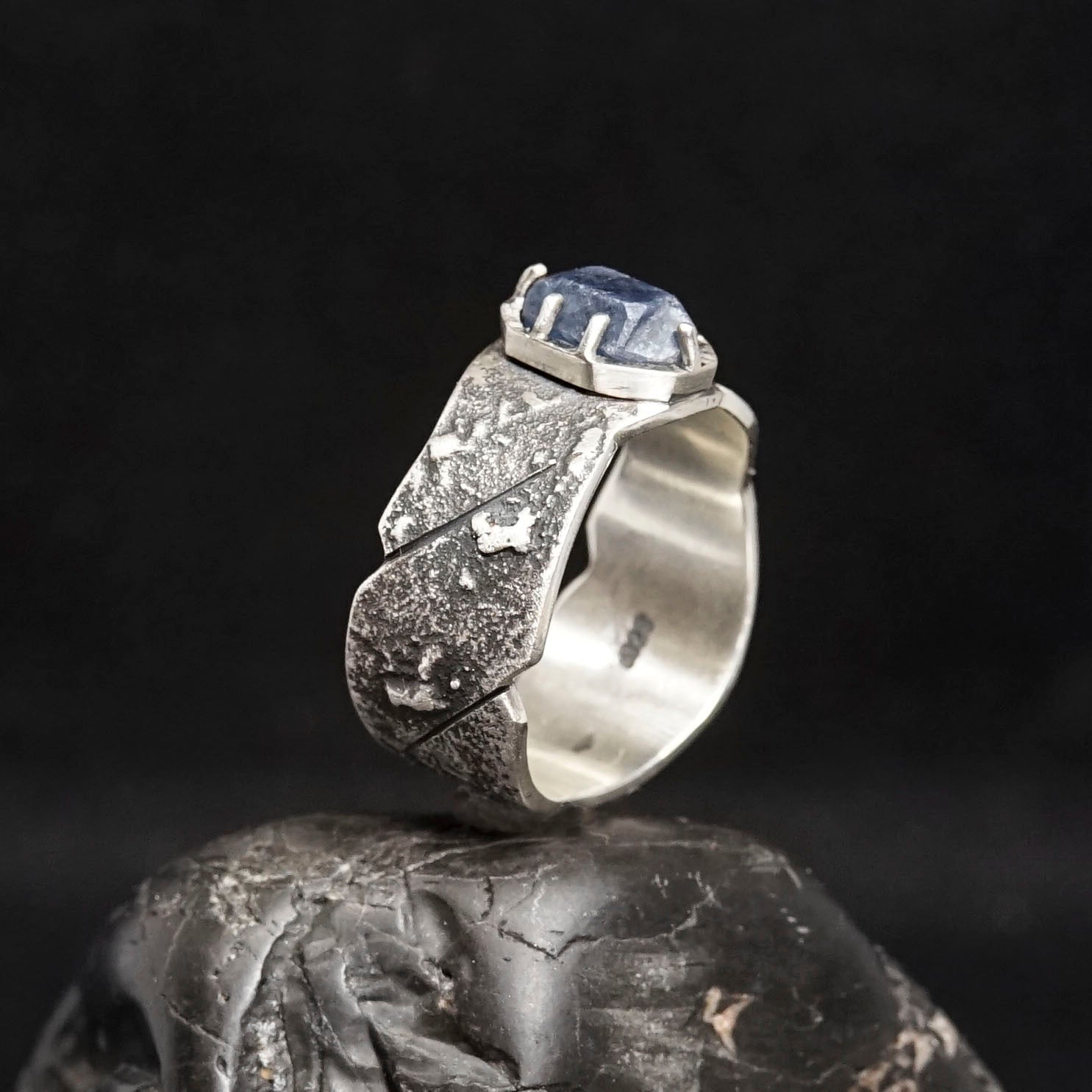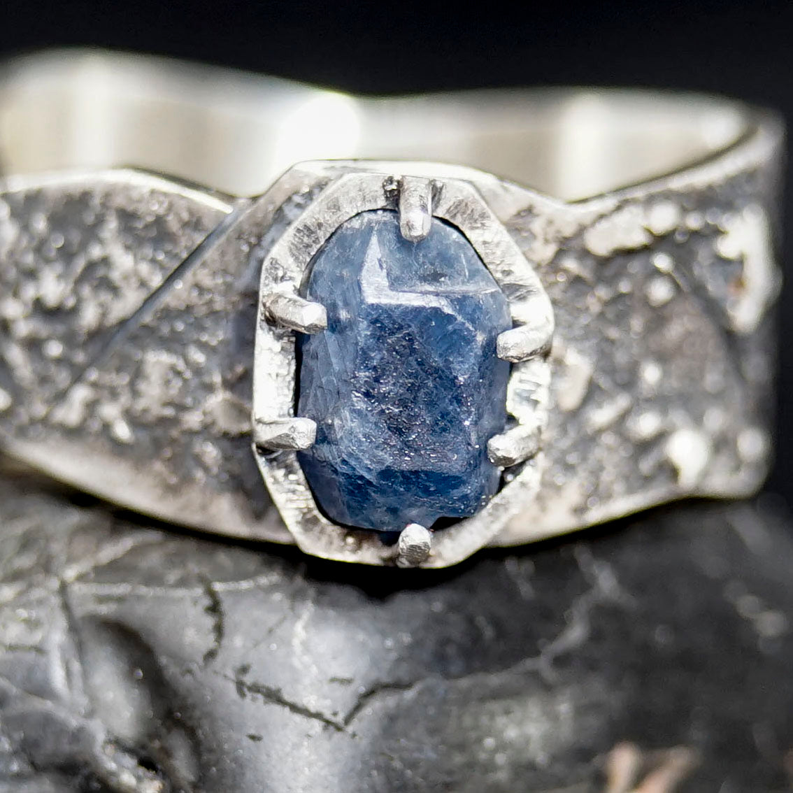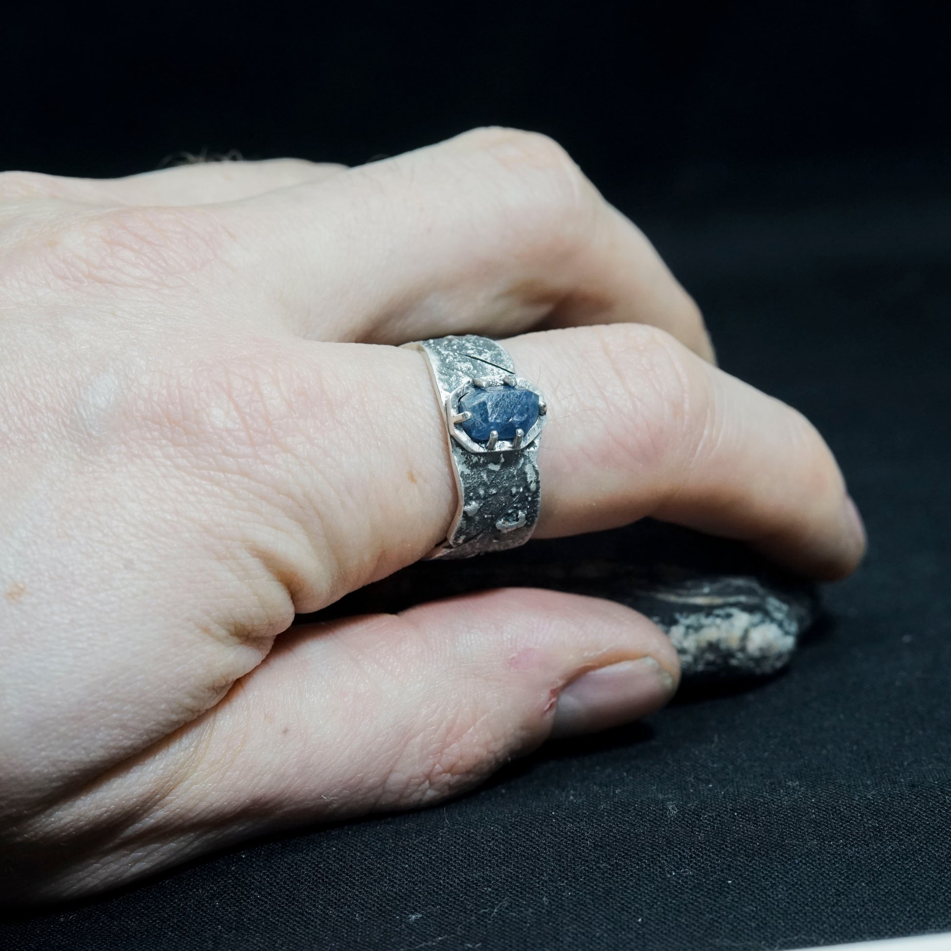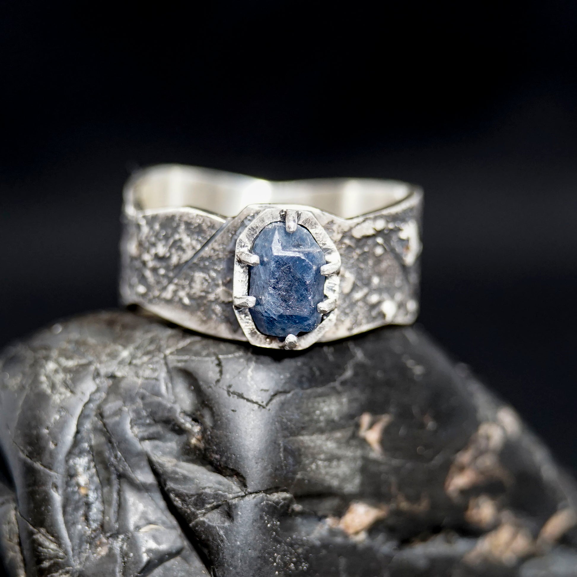 Raw Sapphire, 925 Sterling Silver, Earth Band Ring