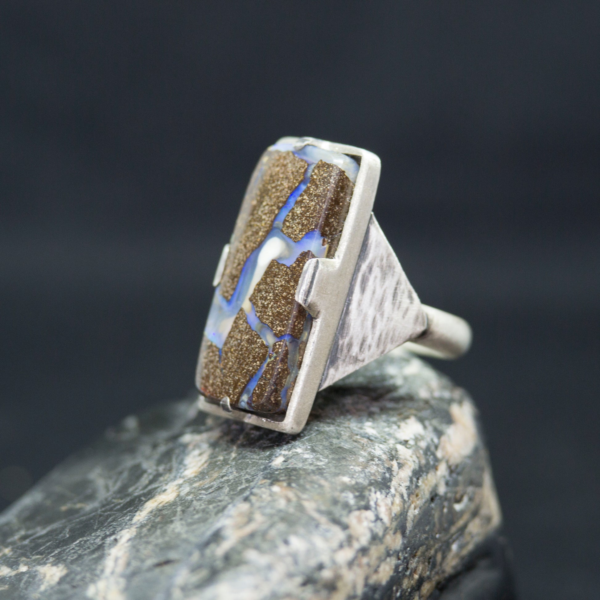 I designed and created this collection during my time in Australia. The stones are Australian boulder opals, mined at Lightning Ridge in Queensland.