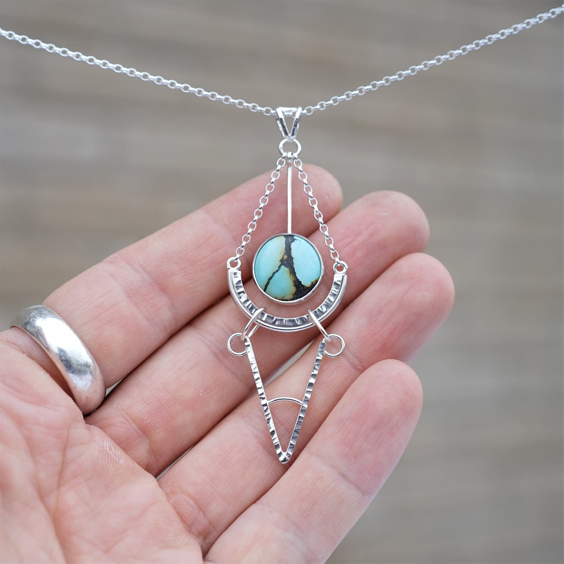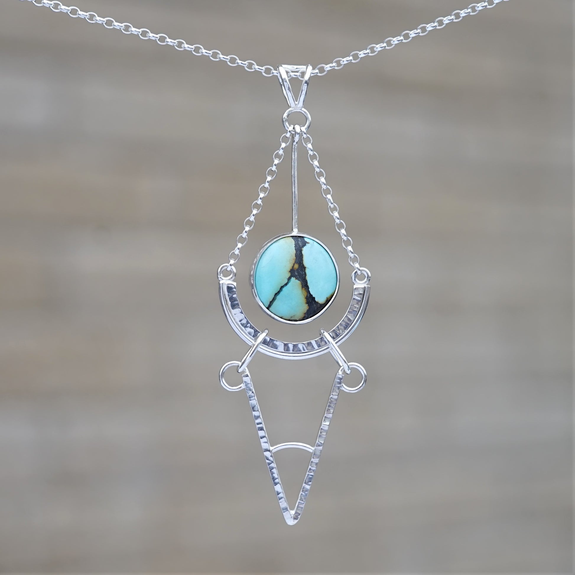 The gem is an Tibetan Turquoise and the pendant is handcrafted from 925 sterling silver.