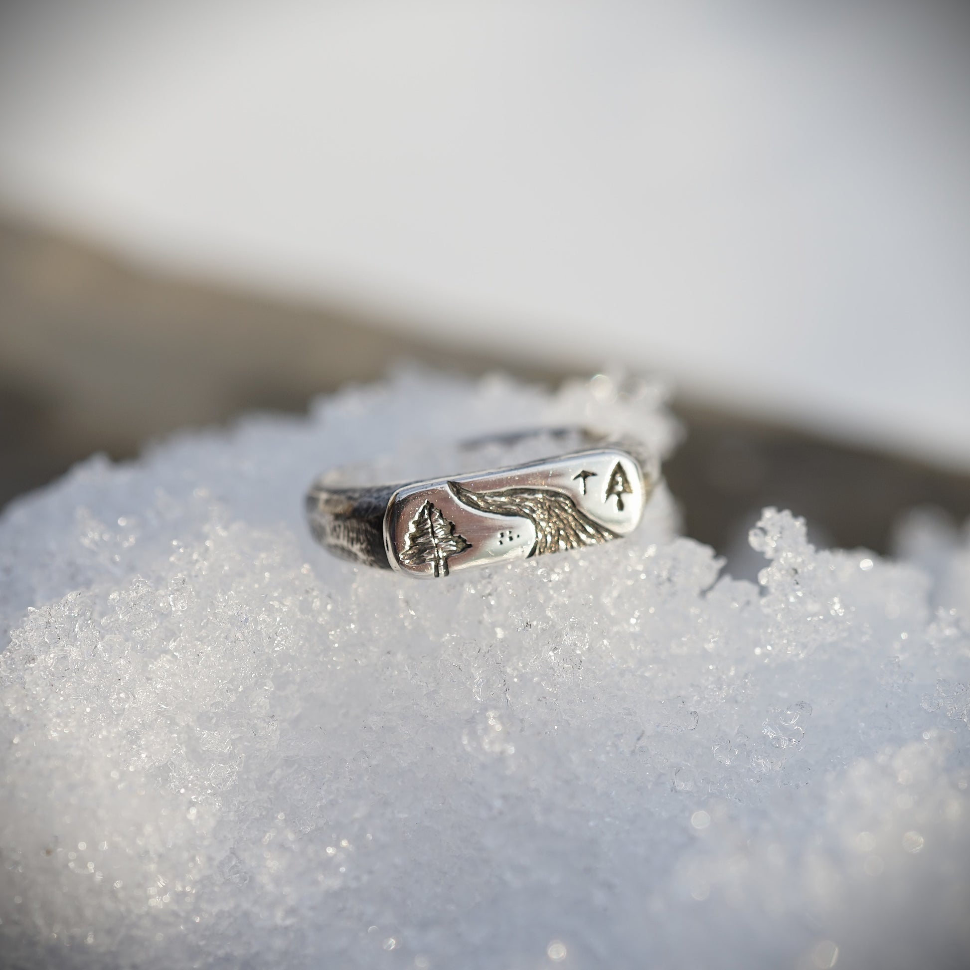 The jewellery is crafted from 925 sterling silver. The landscape are created by hand carving the textures, patterns and shapes into the silver. A technique known as oxidation is used to create the darkness in the silver.