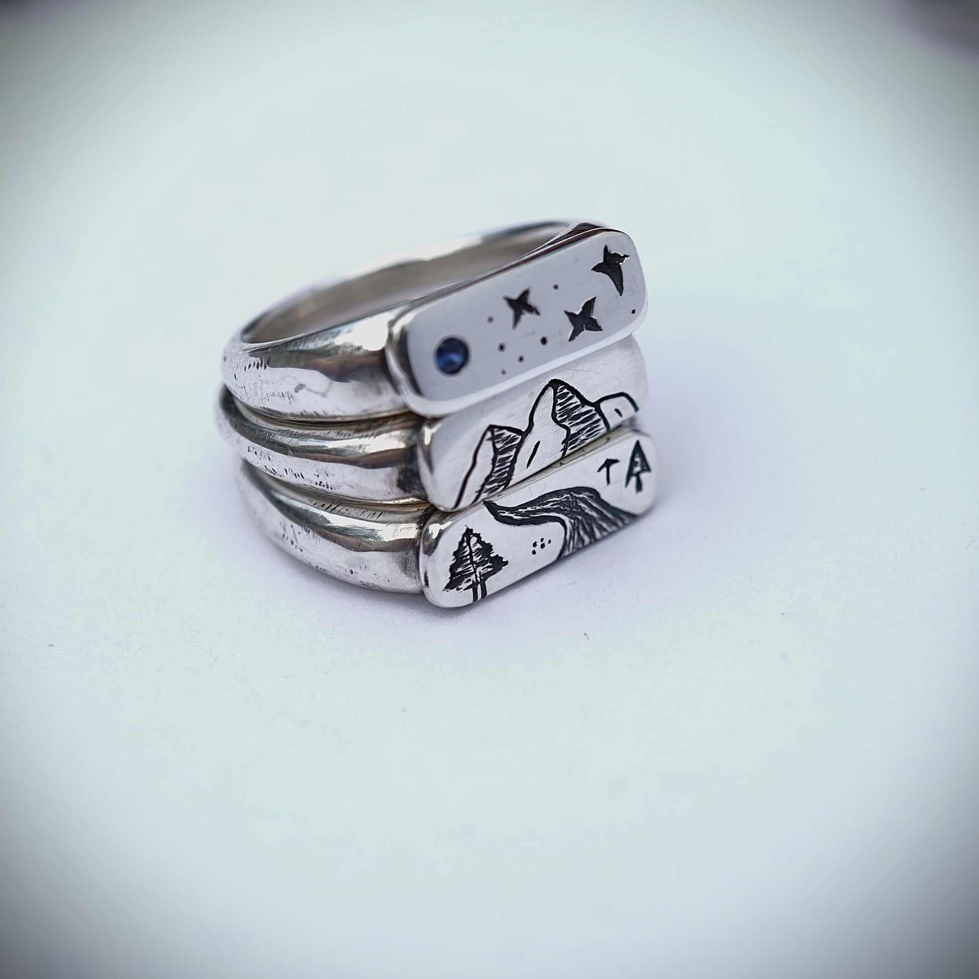 This collection is inspired by my love for nature and my travels. This is my first stacking ring collection as well.